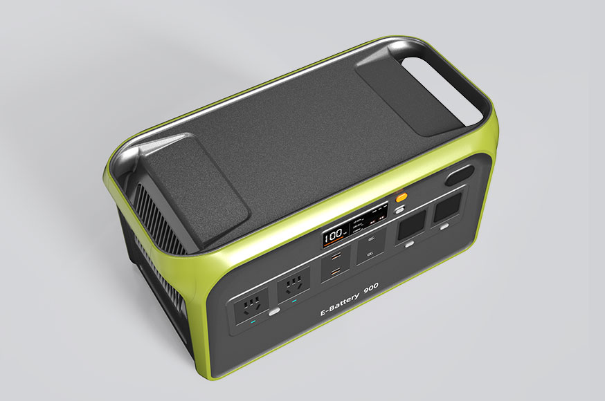 在功能设计方面,它配备了多种类型的输出接口,包括两个通用AC插孔、两个USB-A接口、一个USB-C快充接口以及两个直流输出口,可满足多设备同时充电的需求。正面中央还设有一块高清LED显示屏,能够实时显示电量百分比、电压、电流及工作状态,使用者可随时掌握电池使用情况,提高使用便捷性和可控性。该设备内部搭载高性能锂电芯,具备900Wh的大容量,能为笔记本电脑、无人机、照明设备、手机等设备持续供电数小时,适用于露营、自驾、野外拍摄、停电应急等多种场景。此外,设备内置BMS电池管理系统,有效防止过充、过放、过热和短路等安全隐患,保障用户和设备安全。侧面的散热结构采用纵向条纹设计,提升了整体热交换效率,确保长时间工作依然保持稳定性能。顶部则设计有凹槽托盘区域,可用于临时放置手机、小工具等物品,增强使用灵活性。